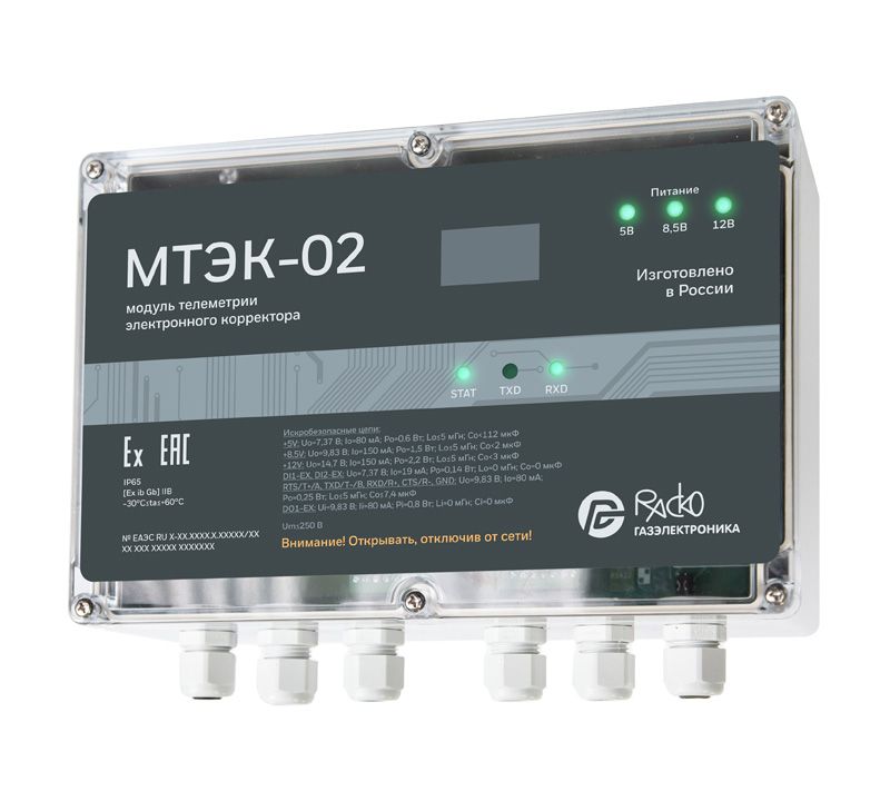 Модуль телеметрии МТЭК-03 предназначен для организации канала связи с корректором ТС220 по интерфейсу RS-232, а также, опционально, по каналам WiFi, Bluetooth, CSD, GPRS. Модуль МТЭК-03 имеет в своем составе барьер искрозащиты и может обеспечивать связь с установленными во взрывоопасной зоне корректорами.